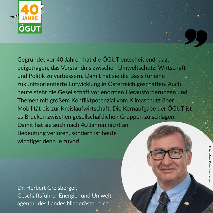 - Herbert Greisberger, GF Energie- und Umweltagentur Niederösterreich (eNu). Er war von 2000 bis 2011 Generalsekretär der ÖGUT.